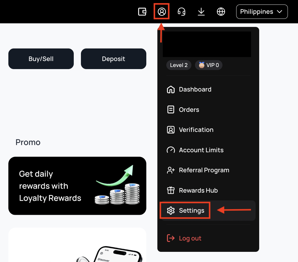 1. Go to your Coins.ph Account Settings page to enable 2FA.