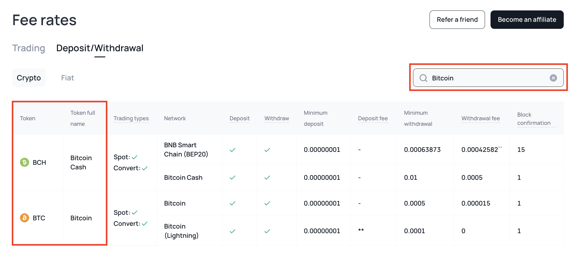 Please see the complete list of Networks and Tokens, alongside availability, on our Fee Rates page.